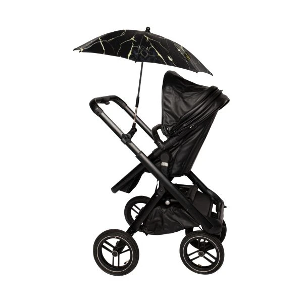De Bellasol Marble Parasol Black/Gold is een ideale accessoire voor elke buggy of kinderwagen met een ovale of ronde stang. De parasol is gemakkelijk te bevestigen door middel van een clip en kan in alle richtingen worden gebogen. Zo zit je kindje altijd beschermd tegen de felle zonnestralen, warmte, wind en regen. Daarnaast is de parasol eenvoudig uit elkaar te halen, zo past de parasol makkelijk in de luiertas of onderin de kinderwagen. Verder is de parasol gemaakt van hoogwaardig materiaal en voorzien van een stijlvol ontwerp.